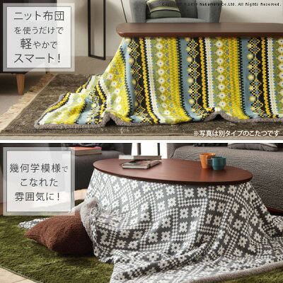 こたつ 折りたたみ 北欧 フラットヒーター デザイン折れ脚こたつ〔アロー〕 +北欧柄ふんわりニットこたつ布団 2点セット コタツ テーブル リビングテーブル 楕円 ウォールナット センターテーブル 木製 おしゃれ テレワーク リモートワーク ステイホーム 引越し祝い 母の日