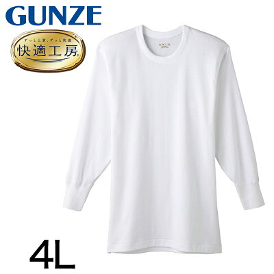 グンゼ 快適工房 紳士長袖丸首シャツ 4L (メンズ GUNZE 綿100% コットン100 男性 下着 肌着 インナー クルーネック やわらか 日本製 大きいサイズ)【取寄せ】