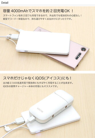 ・電池容量4000mAh/スマートフォンを約2回フル充電が可能。