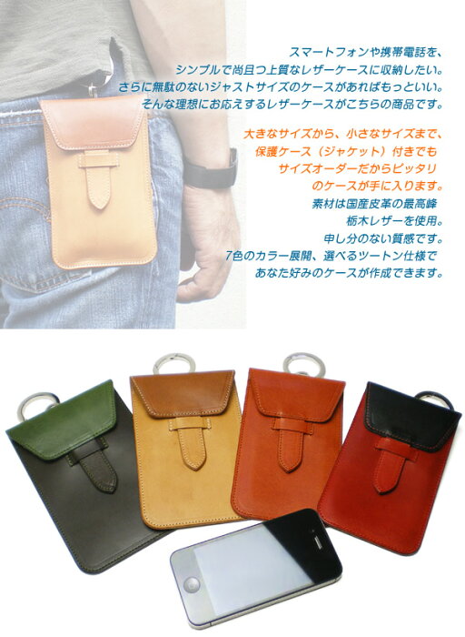 【差込ベルト・カラビナ付 / シンプルタイプ】セミオーダー スマートフォン ケース 栃木レザー【1mm単位29円】 本革 スマホケース【iPhone12 / 11 / 12 mini 12pro 12 pro max / se2 第2世代 XS XSmax X 8 8Plus xperia AQUOS GALAXY 等各種スマホに合わせて作成】